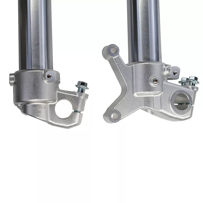 Garfo dianteiro profissional construído para motocicletas off-road, feito de liga de alumínio e aço sólido, é leve e durável. Usando uma combinação de óleo e mola para absorver vibrações, o amortecedor dianteiro invertido duplo ajustável para bicicleta elétrica absorve as vibrações causadas por superfícies irregulares da estrada, reduz a sensação de colisão durante a condução e melhora o conforto de condução.