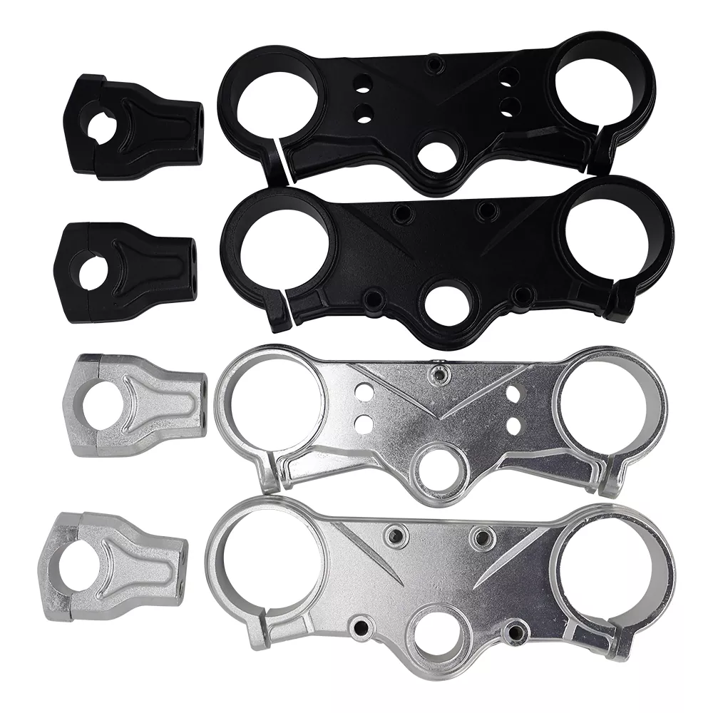 Apresentada de vários ângulos, a braçadeira tripla forjada para bicicleta elétrica é obrigatória. Disponível em preto elegante e prata elegante, você pode escolher a cor perfeita para combinar com sua bicicleta. Essa personalização não apenas melhora a aparência do seu passeio, mas também garante durabilidade e desempenho excepcionais. Eleve a sua experiência de ciclismo com este componente elegante e confiável!